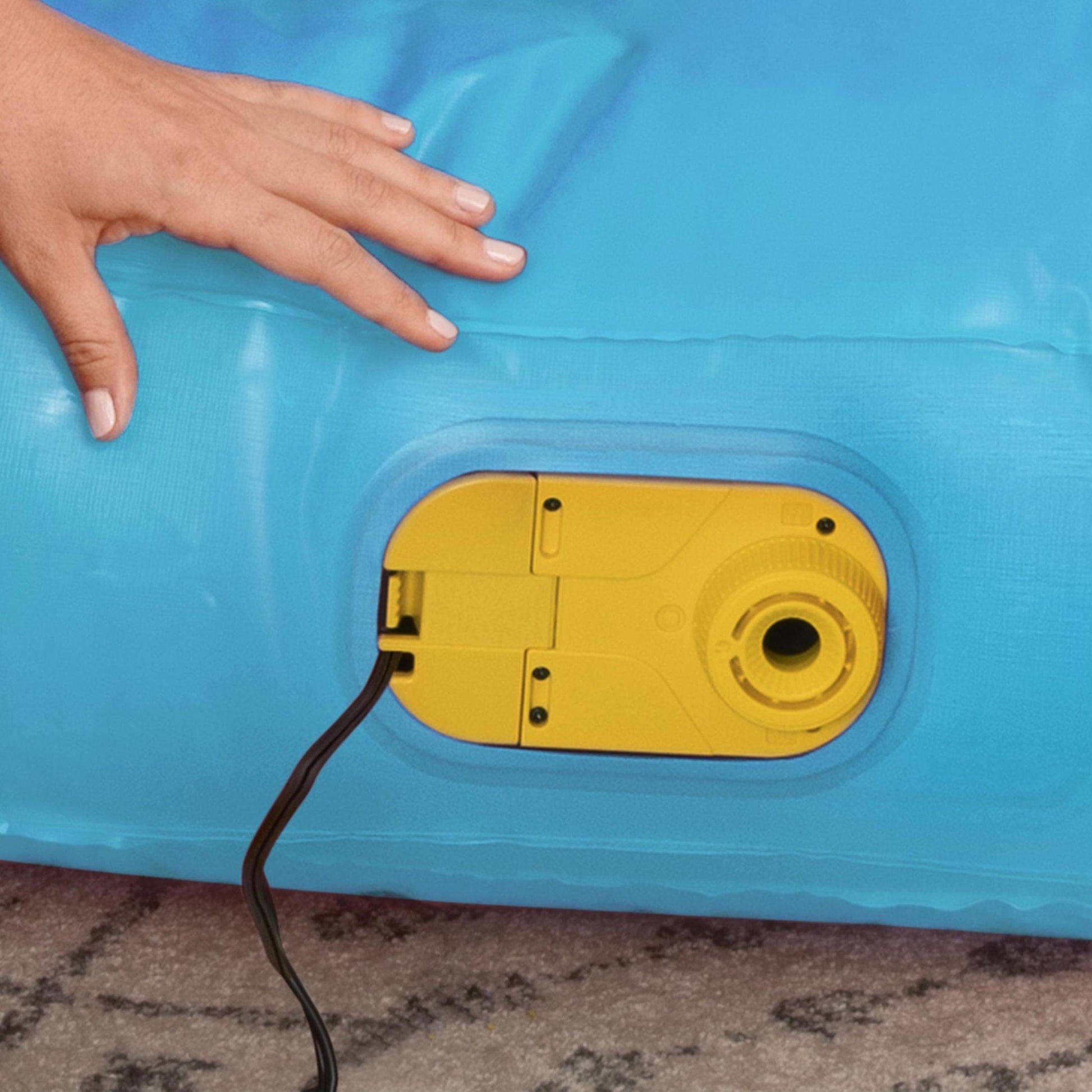 No wrestling with manual pumps. No huffing and puffing. The built-in 110-120V electric pump does all the work. Press the button, and the entire bouncer inflates automatically in about 4 minutes. You literally sit down while it does the heavy lifting.
