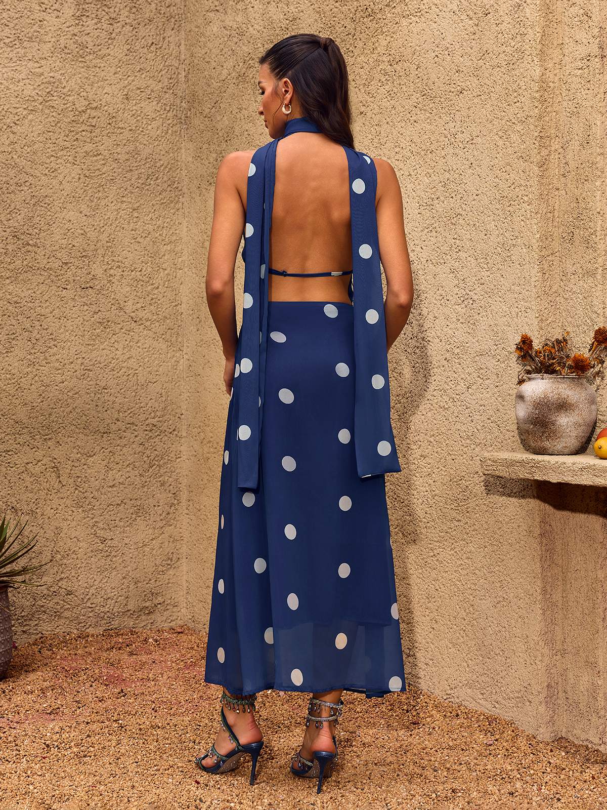Infuse your wardrobe with a sense of timeless elegance in the Chelo Maxi Dress. This piece features a beautifully draped cowl neckline that adds a soft, effortless movement to the bodice, elegantly highlighting the décolletage. The classic polka-dot print is reimagined in a contemporary maxi length, offering a rhythmic visual appeal that is both charming and sophisticated. Crafted from a lightweight, flowing fabric that skims the curves before sweeping the floor, the Chelo dress is perfect for sunset garden parties, upscale brunches, or any occasion that calls for a refined "retro-modern" aesthetic.
