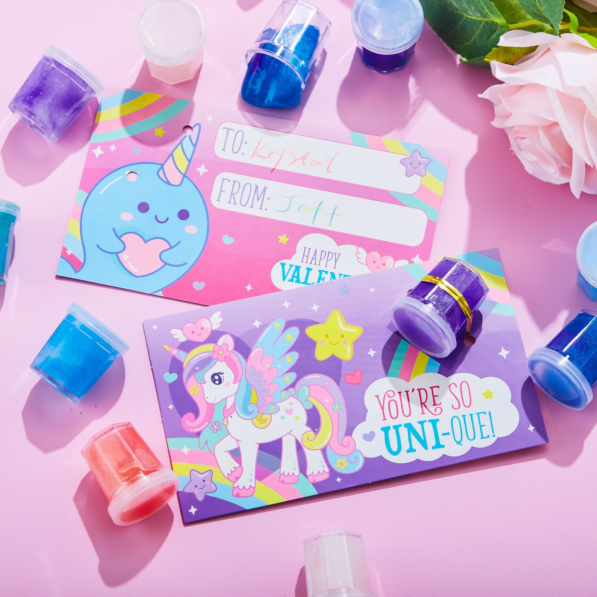 - Best Gifts: Our Galaxy Slime with Cards Valentine Party Favors Set provides fun and entertainment for your kids! It’s a great gift option for kids’ school classroom prizes, gift exchange, love notes and more!
